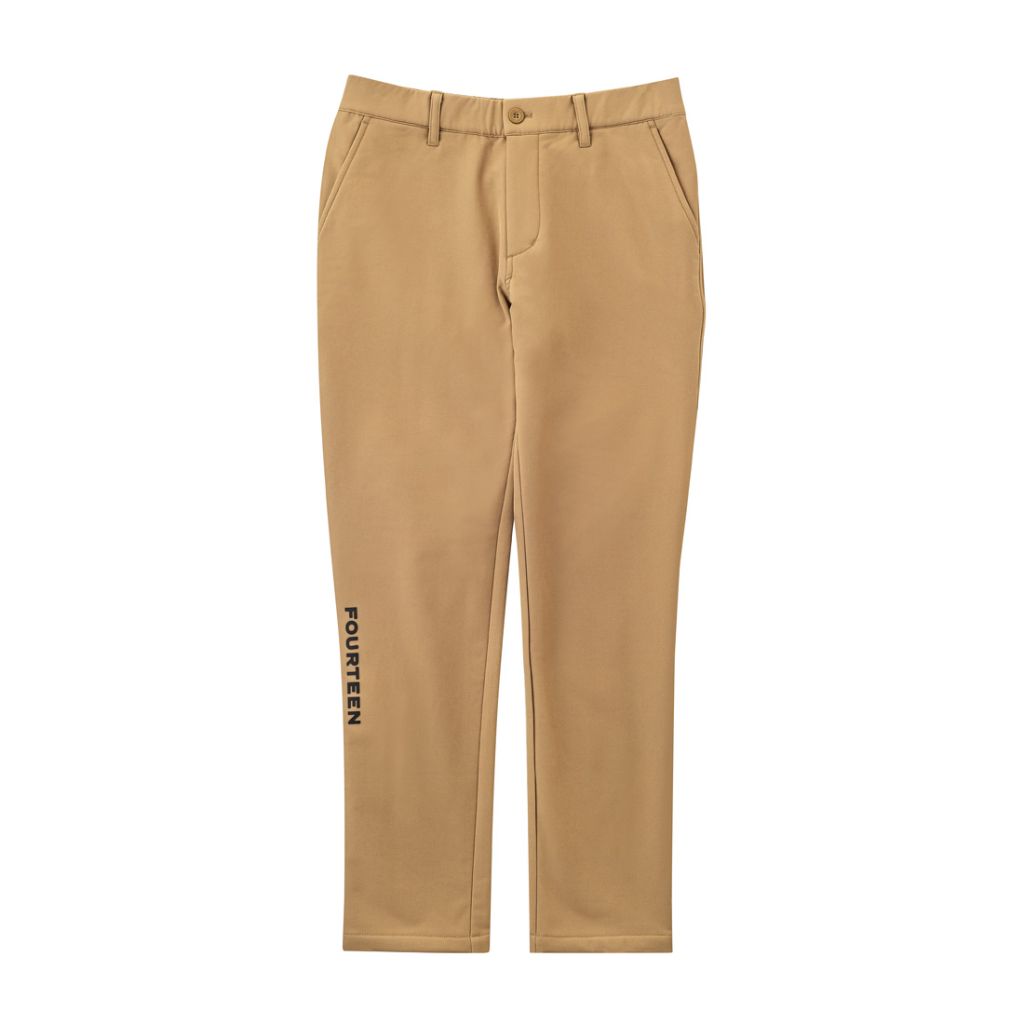 裏起毛ロングパンツ(FDPT10522) (税込) 数量限定の為、在庫が終わり次第販売終了となります。何卒ご了承ください。 カートに入れる *ログインすると会員価格が表示されます。 *お届けについて > / 返品・キャンセルについて > カラー --カラー-- ブラック カーキ ベージュ サイズ --サイズ-- M L XL M L XL M L XL 「品のあるスマートシルエット」と「抜群の動きやすさ」を両立。秋冬のラウンドを快適に楽しむための、機能派ゴルフスラックス。 【カラー】 ベージュ、ブラック、カーキ 【素材】 表地:ポリエステル:94% ポリウレタン:6% 袋布:ポリエステル:95% ポリウレタン:5% 【サイズ表】 MLXL 総丈 103.0cm104.0cm107.5cm ウエスト 82.0cm86.0cm93.0cm ヒップ 104.5cm108.5cm114.5cm 股上 25.5cm26.5cm28.4cm 股下 78.0cm78.5cm80.0cm 渡り 32.5cm33.7cm35.8cm 裾巾 17.8cm18.8cm20.0cm MADE IN CHINA detail 余計な装飾を抑えたミニマルなデザインと、脚を美しく見せるスマートなシルエットが特徴。 左脚裾部分にさりげなく配置した「FOURTEEN」のロゴが、全体の印象を引き締め、上品なスポーティ感を演出します。 ゴルフ場でのラウンドはもちろん、移動時や日常のアスレジャースタイルにもマッチする万能な1本です。 スイングを妨げない立体設計 脚の動きに合わせたパターン設計により、膝や腰の可動域をしっかり確保。体重移動やスイング時の突っ張り感を軽減し、スムーズなプレーをサポート。 高いストレッチ性で快適な動き ポリウレタン混素材が適度な伸縮性を発揮し、しゃがむ・歩く・スイングするなどあらゆる動作に自然にフィット。長時間のラウンドでも快適な履き心地が持続。 裏起毛×撥水加工で秋冬ラウンドに最適 暖かい裏起毛仕様で保温性抜群。さらに撥水性と速乾性を兼ね備え、朝露や小雨、汗にも強く快適な状態をキープ。 オン・オフ対応のスマートシルエット ベーシックで洗練されたデザインは、どんなトップスとも好相性。プレー時だけでなく、移動や日常のスポーツカジュアルにも活躍します。 同じカテゴリーのおすすめ商品 クルーネックニット(FDNT10522) アウター ¥25,300(税込)から 裏起毛ロングパンツ(FDPT10522) パンツ ¥27,500(税込)から 長袖モックネック(FDMN10522) トップス&シャツ ¥19,800(税込)から モックネックシャツ(FDMN20521) トップス&シャツ ¥15,400(税込)から LISALT × FOURTEENコラボTシャツ トップス&シャツ ¥8,800(税込)から TFW49コラボ LUXURY BACK MESH POLO トップス&シャツ ¥38,500(税込)から TFW49コラボ LINE SLEEVE POLO トップス&シャツ ¥31,900(税込)から タックハーフパンツ(FDHPT20521) パンツ ¥23,100(税込)から カーゴハーフパンツ(FDHPT10521) パンツ ¥23,100(税込)から モックネックシャツ(FDMN10521) トップス&シャツ ¥16,500(税込)から See All